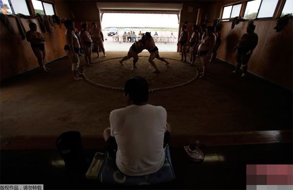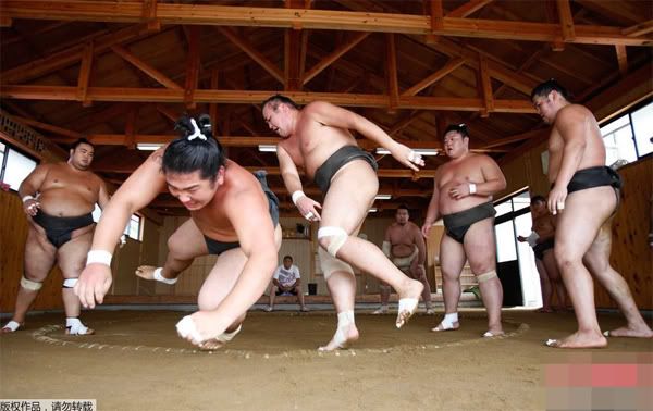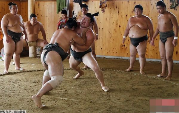 Đây là những hình ảnh trong một trại tập luyện Sumo tại tỉnh Fukushima - nơi từng bị phá hủy bởi động đất và sóng thần nghiêm trọng hồi tháng ba. Hôm 1/8, tại đây lại tiếp tục diễn ra một cơn địa chấn rung chuyển thành phố tuy nhiên không gây nguy cơ sóng thần. Sau khi cuộc sống bắt đầu trở lại bình thường, các VĐV sumo cũng lao vào luyện tập bù đắp chuỗi ngày dài rỗi rãi vì thảm họa thiên nhiên