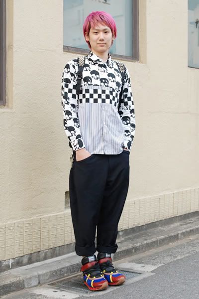Anh chàng tóc tím với đôi giầy và chiếc túi xách thật đáng yêu ngộ nghĩnh