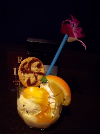 đồ tráng miệng của nami vì có cam với bánh quy in hình tiền belli