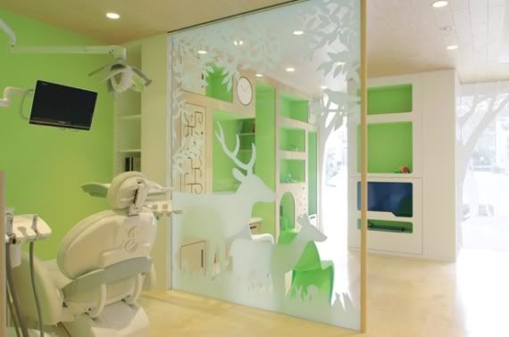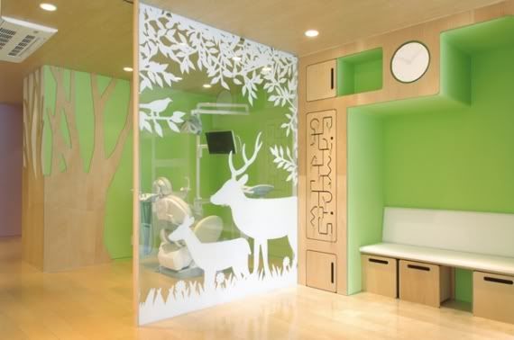 Hình ảnh những con thú được vẽ trên các bức tường bên trong nội thất phòng khám, với mục đích tạo sự thoải mái cho các em nhỏ khi đến đây khám răng. Đây là một thiết kế thú vị của Teradadesign Architects.