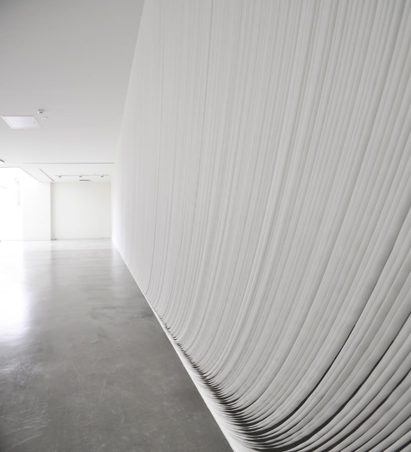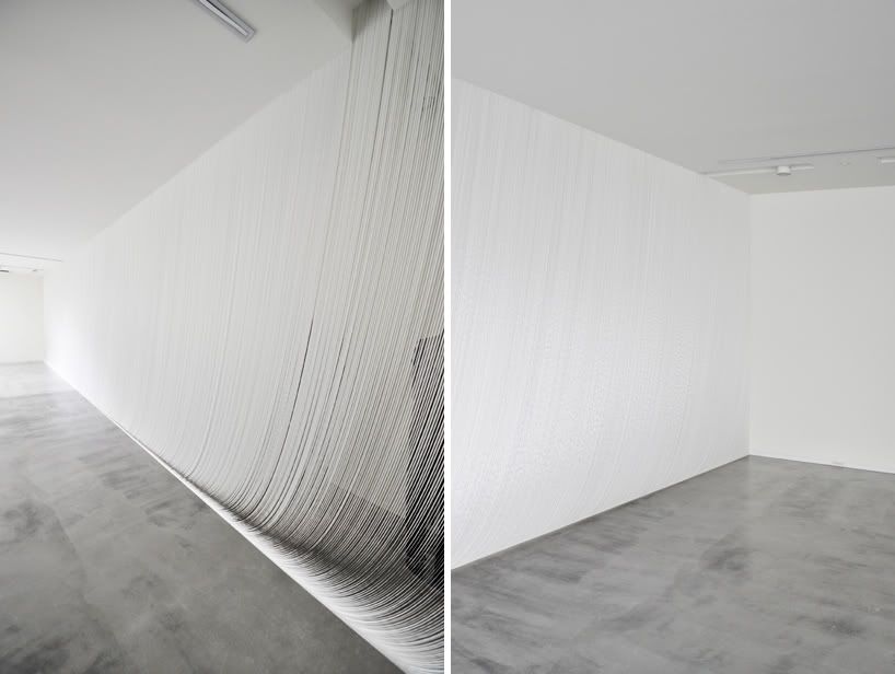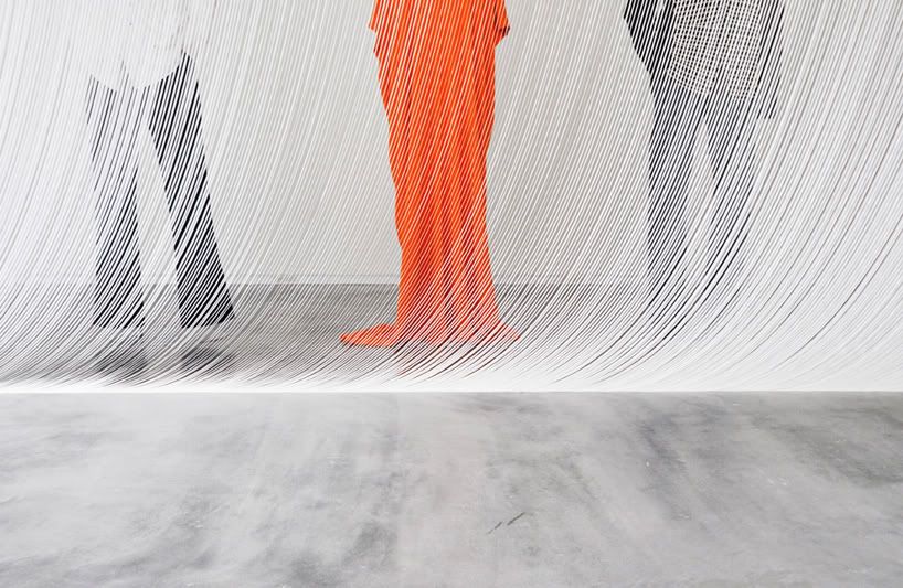 Những dải băng bằng polyester mỏng rộng khoảng 18mm tạo thành một bức màn linh động với độ mờ ảo như thay đổi không ngừng tuỳ theo khoảng cách giữa nó và người quan sát.