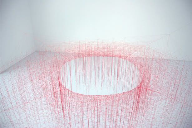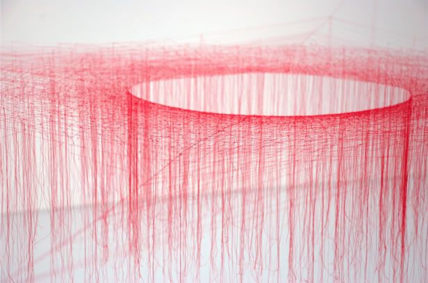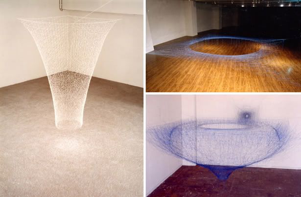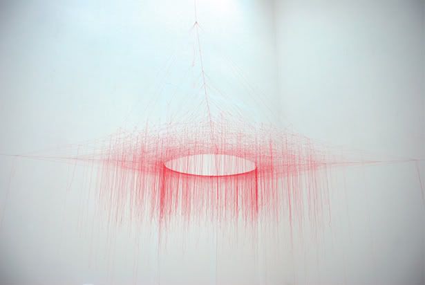 Hơn hai thập kỷ qua nghệ sĩ người Nhật Akiko Ikeuchi đã thực hiện những “cơn lốc xoáy” từ lụa với kích thước tương đương một gian phòng, bằng cách buộc hàng trăm mối gút chỉ màu để tạo nên những tác phẩm sắp đặt tinh vi.