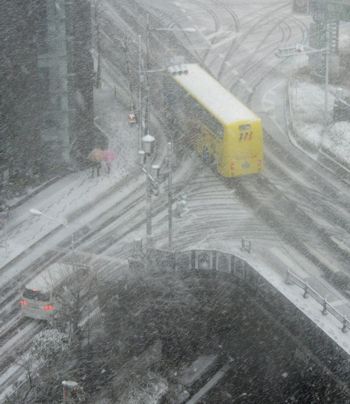 Những cơn mưa tuyết lớn đầu tiên của mùa đông khiến thủ đô của nước Nhật mang một màu trắng chủ đạo và làm cho hoạt động của người dân trở nên khó khăn.