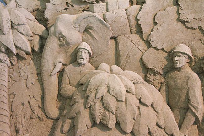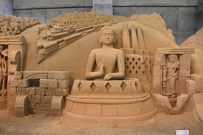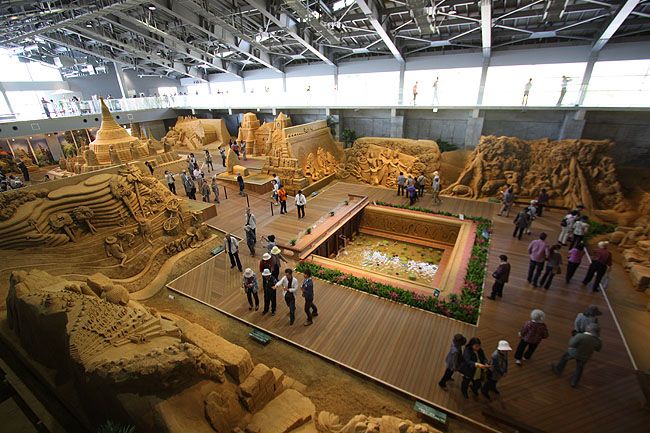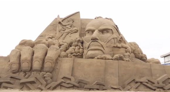 Đây là tác phẩm Shingeki No Kyojin (tên một anime nổi tiếng nói về cuộc chiến của con người chống lại các Titan khổng lồ để giành sự sống) của nghệ nhân Toshihiko Hosaka đến từ Nhật Bản. Tác phẩm được làm từ 80 tấn cát trong vòng 10 ngày.
