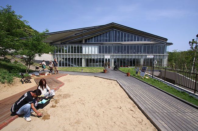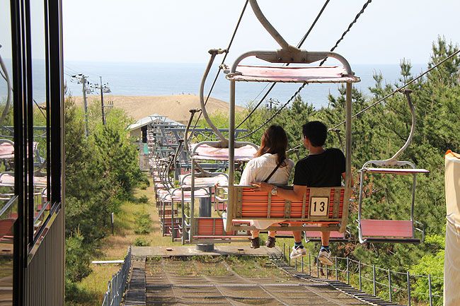 Phía sau khu vực bảo tàng là ngọn đồi cát rất lớn gọi là Sakyu. Để đến đây bạn phải ngồi cáp treo khoảng 5' với giá vé là 300 yên. Tại đây còn có những cửa hàng lưu niệm và nhiều quán ăn đặc sản địa phương phong phú.