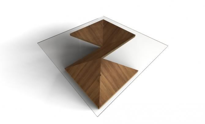 Chiếc bàn đứng trên đế gỗ gấp nhờ 2 thanh kim loại làm từ chrome. Mọi góc từ trên xuống, từ bên cạnh sang đềo cho người sử dụng cảm giác vui mắt, kỳ lạ.