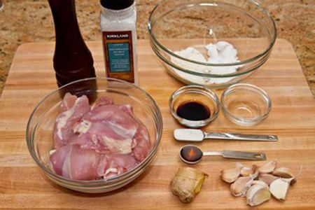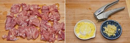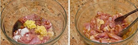 Gà rửa sạch, cắt miếng nhỏ vừa ăn cỡ quân cờ khoảng 2-3cm. |