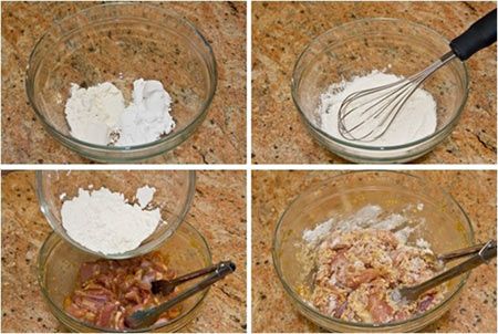 Dùng đũa quậy đều cho bột và trứng thấm vào gà. |