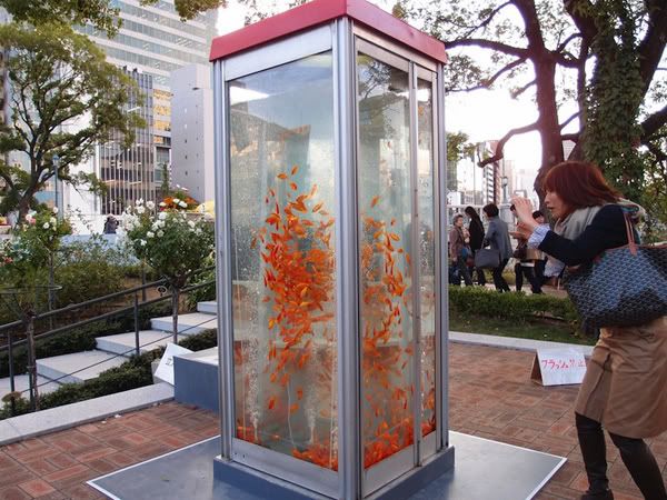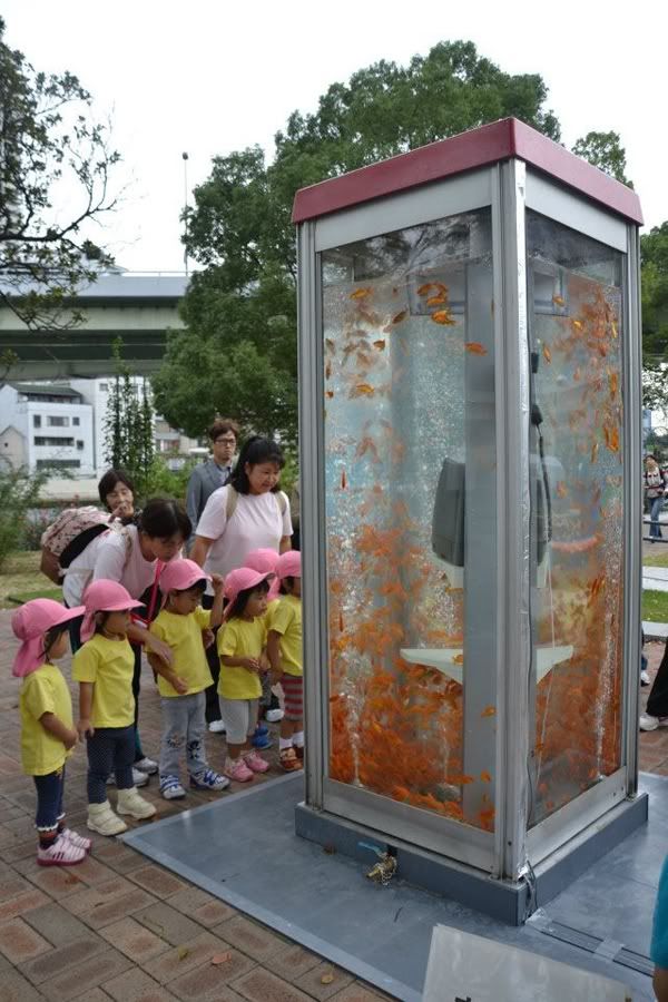 Trước đây, đã từng có một phong trào nghệ thuật ở Brazil, nơi 100 nghệ sĩ chuyển đổi 100 bốt điện thoại công cộng thành các tác phẩm nghệ thuật. Và bây giờ, phong trào này đã lan rộng đến Nhật Bản, nơi mà nhóm nghệ sỹ Kingyobu đã biến những buồng điện thoại này trở thành những bể cá đầy cá vàng.