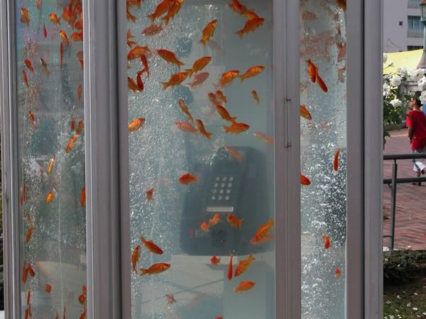 Trước đây, đã từng có nhiều tác phẩm nghệ thuật dựa trên các buồng điện thoại công cộng nhưng những "bể cá" khổng lồ như thế này thì mới xuất hiện lần đầu tiên.